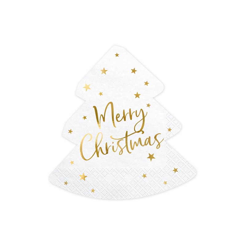 Prachtige servetten afgewerkt met goudfolie 'merry christmas' opdruk in de vorm van een kerstboompje.